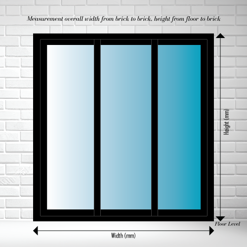 When measuring windows and from the outside. We are looking for the measurement inside of the brick to brick for width and brick to floor for height as shown in the diagrams besides. Please give measurements in millimetres. The height (vertical) should be given first followed by the width (horizontal).