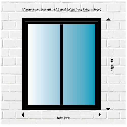 When measuring windows and from the inside. We are looking for the measurement inside of the brick to brick as shown in the diagrams besides. Please give measurements in millimetres. The height (vertical) should be given first followed by the width (horizontal).